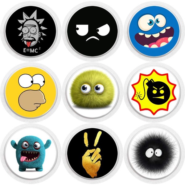 Stickers will emphasize your character and give the sensor individuality. Stickers are made from wear-resistant vinyl. They do not get wet or scratched. Find your sticker that will bring joy and vivacity, to cheer up all day. How to stick a sticker A correctly installed sticker will retain freshness and a neat appearance for longer. These simple tips will help you stick the cover without any problems. For better bonding, thoroughly clean the installation site from grease and dust. Stick the sticker exclusively on a dry surface. Do not leave air between the case and the sticker, squeeze it to the edges until it comes out completely. Stickers are easy to install and remove on their own, without resorting to the services of a service center. They do not leave traces of glue and do not spoil the case. Adults and children The more stickers you have, the more often you can change your image. Today he can be self-confident and loud, and tomorrow modest and quiet, you decide. Children are very fond of eye-catching pictures. A bright cover on a sensor is another way to interest a child in diabetes treatment, arouse confidence and reassure. It is noted that children are more likely to make contact if serious procedures occur in the format of the game. A simple sticker will help to make the sensor in the eyes of a child not so scary. Set17 (Einstein, Bomb, Hand, Homer, Blue monster, Displeased face, Green fluffy, Black fluffy, Blue face).