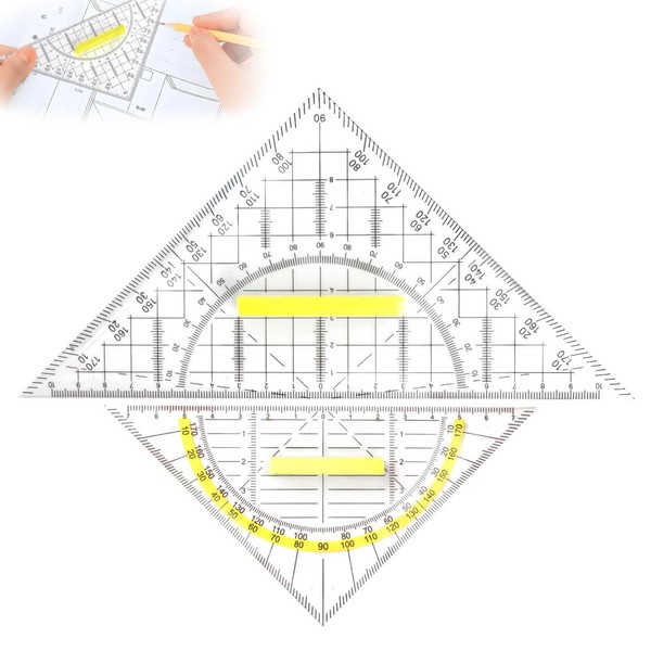 - Precise measurement: with this set square with handle set, you can measure angles and lengths precisely. Thanks to the possibility of length and angle measurement, this set square is an indispensable tool for geometry and technical drawing. It is perfect for drawing complex figures or irregular angles.