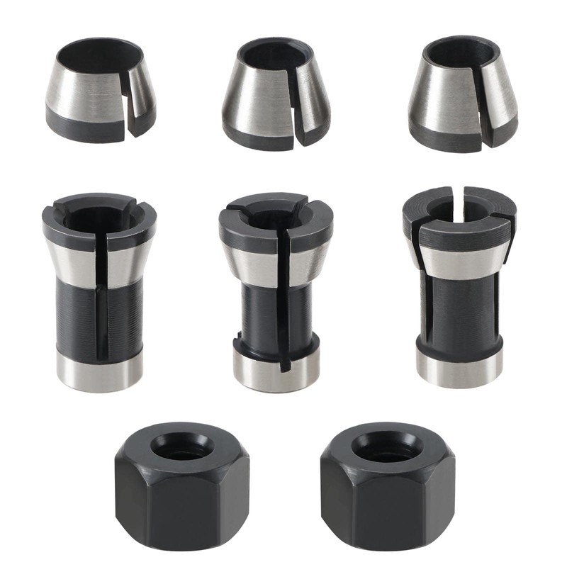 Set with 8Pcs Router Bit Collet Chuck with Screw Nuts Electric Router Clamp Adapter Router Collet Chuck Adapter 6mm 6.35mm 8mm for Engraving Machine