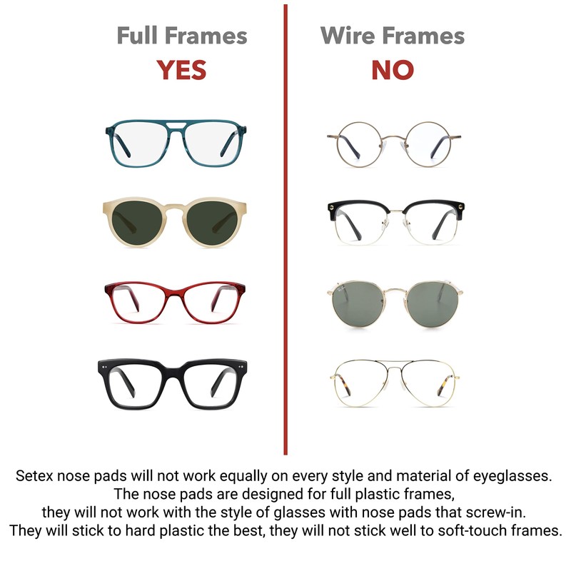 - Setex Anti-Slip Nose Pads use a premium 3M adhesive to maximize the bond lifetime to plastic eyeglasses frames while allowing residue-free removal. Setex Nose Pads are designed to be replaced as needed.