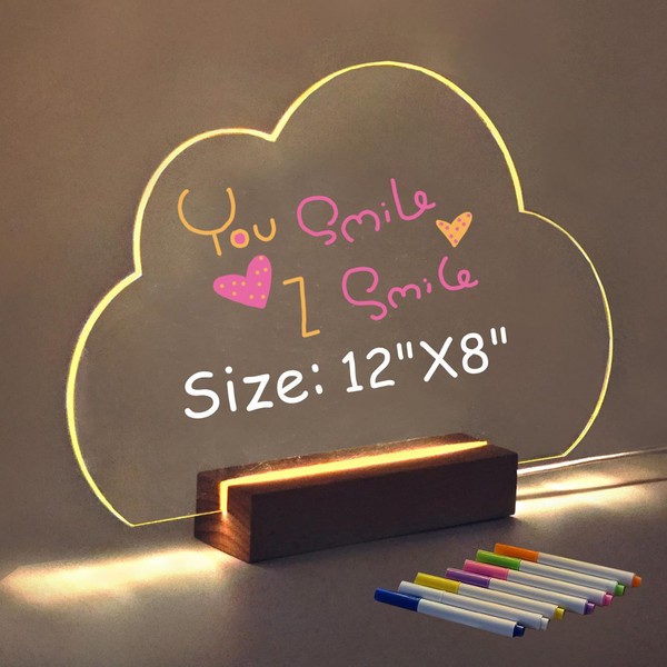 - Unique Cloud Design: LED Acrylic Message Board with Colors is a state-of-the-art memo board that combines practicality with style. The fashion design adds a unique charm to your desktop. Size:12 inches X8 inches.