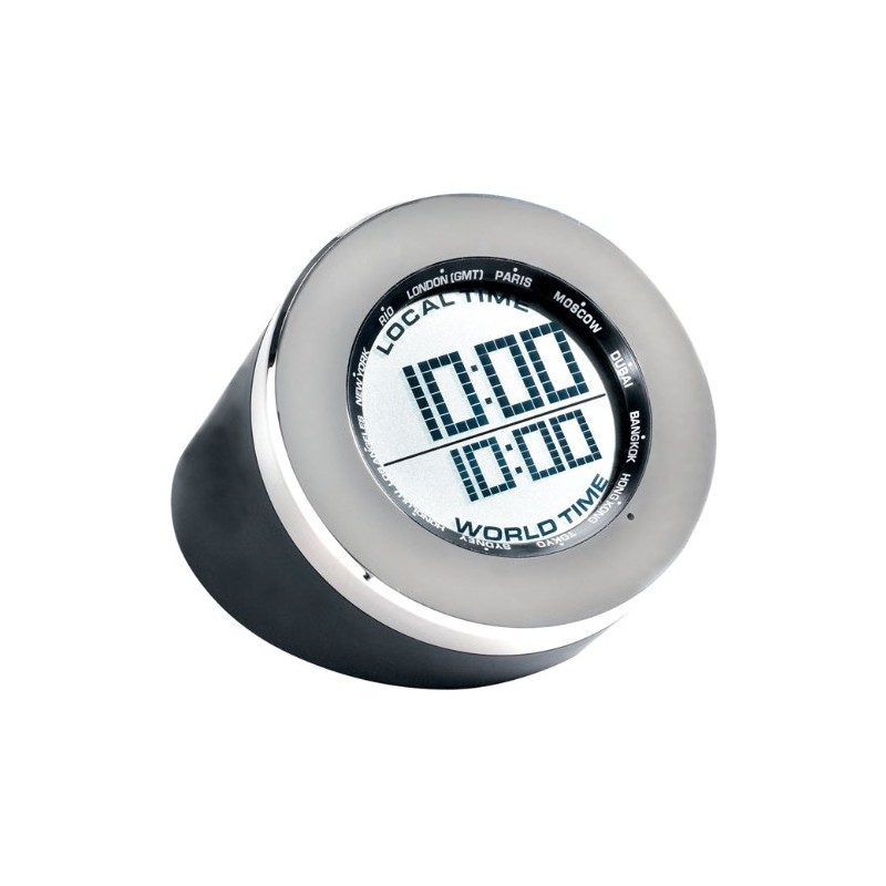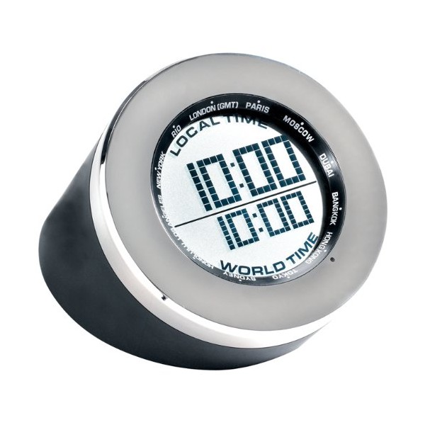 Seth Thomas Silver Tone Metal and Black Rubber Case Grey with Digital LCD Dial Round Multifunction Desk Clock