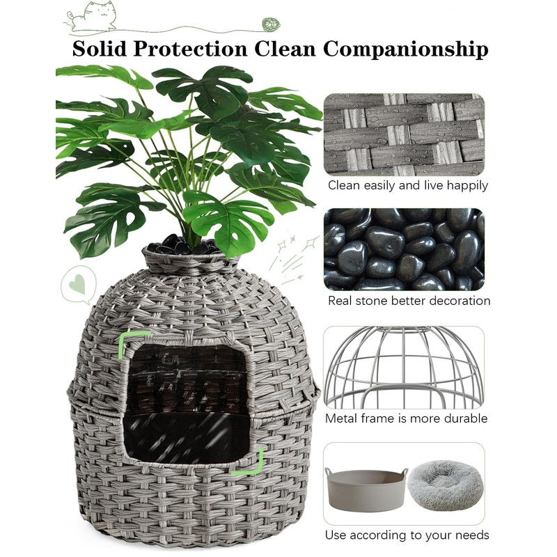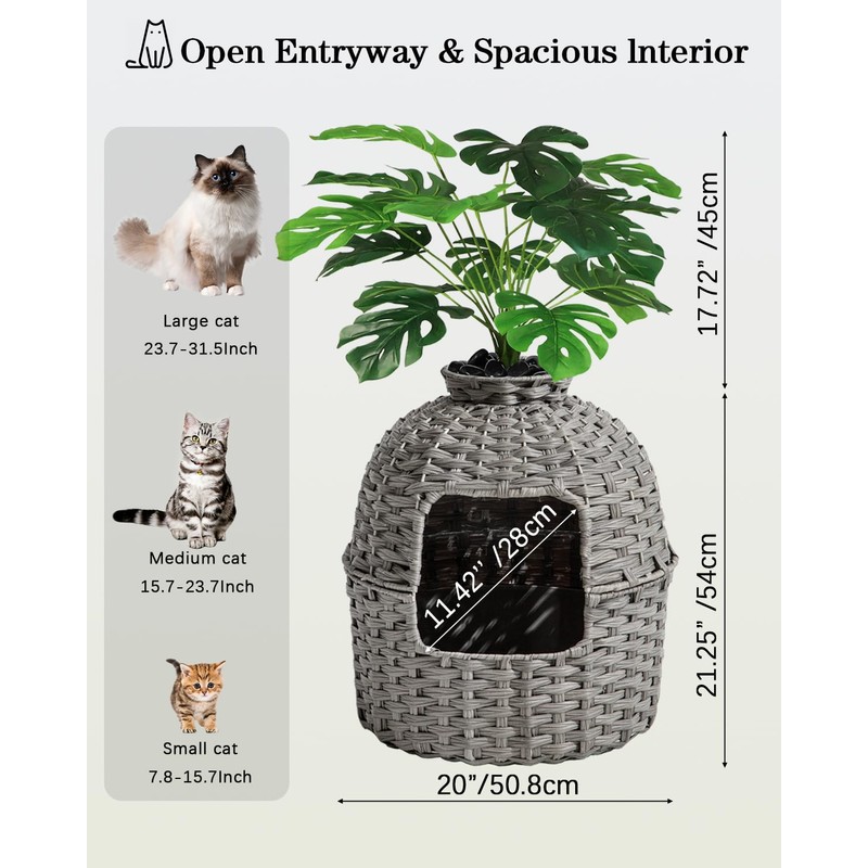 - Roomy and Cat-Friendly: Plant litter boxes size is 20 L x 20 W x 38.97 H, the semi-enclosed design provides a more private environment for cats;the planter litter box is hand-woven from odorless PE material rattan, decorative litter box is safe for cats