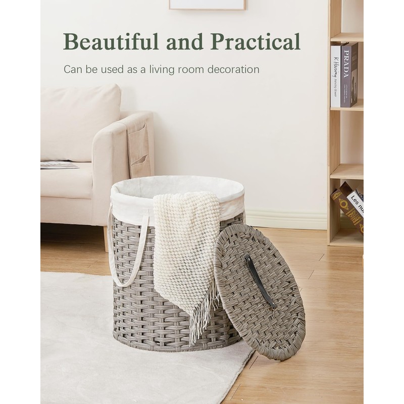 - Removable Laundry Bags: The woven laundry basket with lid comes with a washable lining bag to tote the clothes to the washing machine and back. The rattan laundry basket has handles, making wicker laundry baskets easy to carry the basket to another room