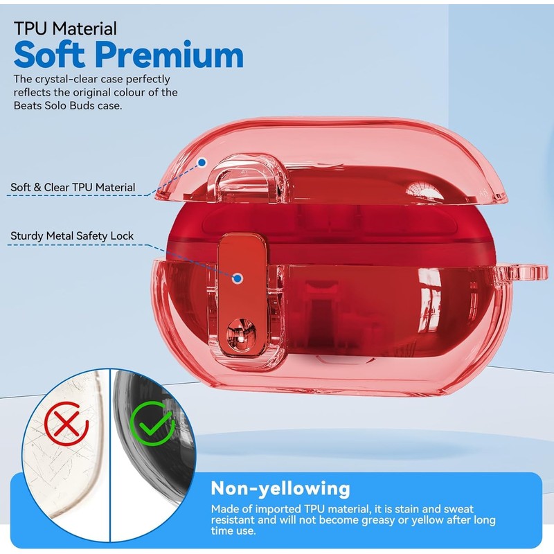 - 【Secure Lock Mechanism】Ekoonpft's Clear Case for Beats Solo Buds is designed with a Military-spec safaty lock prevents accidental openings when carrying or dropped.