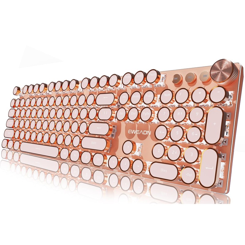EWEADN Typewriter Style Mechanical Gaming Keyboard, Wired Mechanical Keyboards,104 Keys Backlit LED Keyboards, Media Control Knob, Wired Computer Keyboard Pink Switch for Windows/Mac/PC-Pink