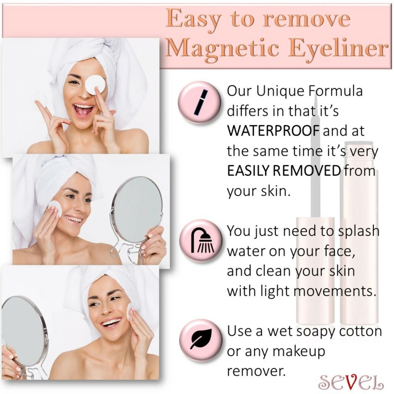 Our Unique Magnetic Eyeliner differs that it isWaterproof and at the same time it’s very EASILY removed from your skin.