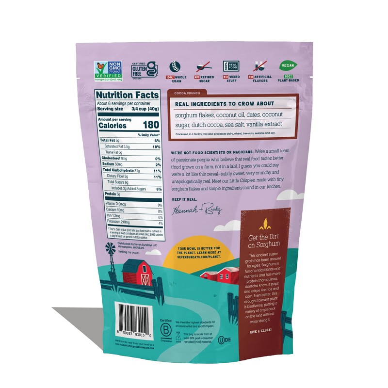 - Better-For-You Cereal From Seven Sundays – We believe cereal should be made from real food, not lab experiments. Our Little Crispies are crafted with simple, nutritious ingredients to fuel your day the right way.