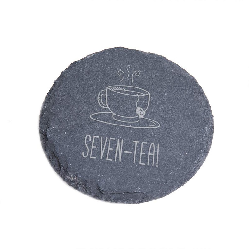 "Seven-Tea!" Engraved Slate Coaster - Funny 70th Birthday Gift for Tea Lovers
