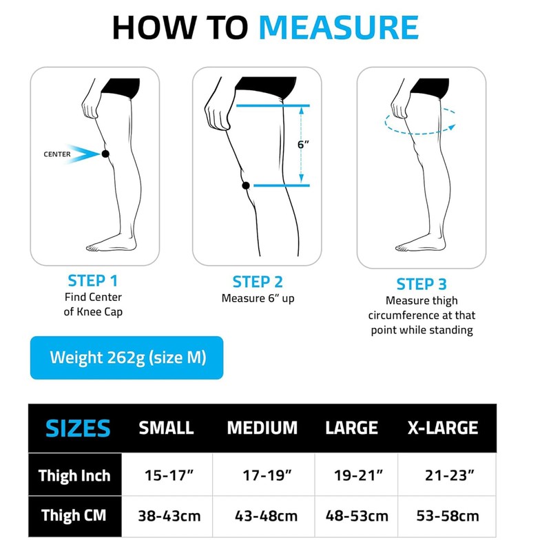 • Das Slip-On-Design wurde entwickelt, um das Gewicht in der Kompressionspassform zu halten und liegt höher am Oberschenkel als die meisten Knieschützer. Ein Silikonstreifen an der Innenseite verhindert das Abrutschen des Schützers.