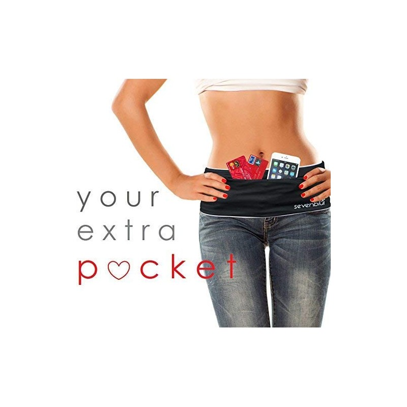 SevenBlu Invisible Travel Money Belt, Running Belt - for Men n Women - Your Smartphone Pocket, Waist Pack, Passport Holder - with Zipper - Fits Biggest Phones (Black S)