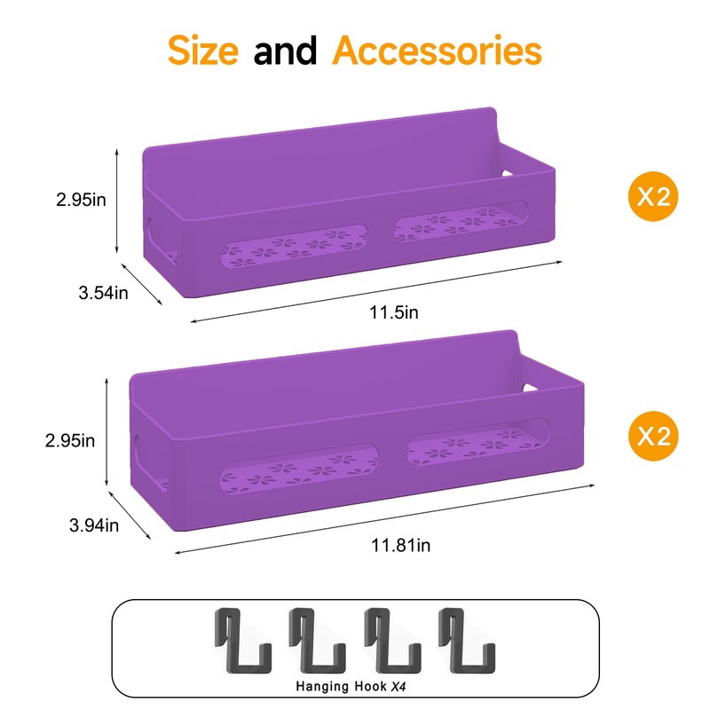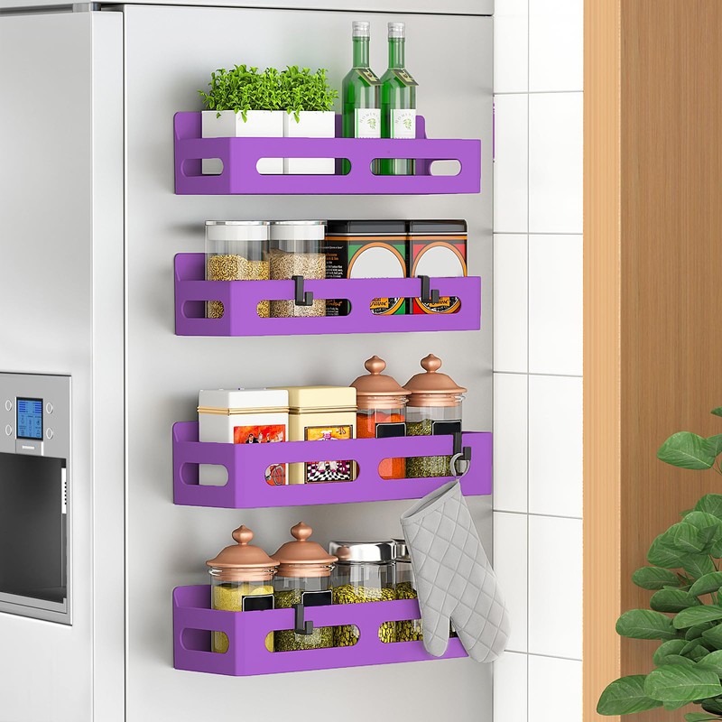Sevenblue 4 Pack Magnetic Spice Rack for Refrigerator, Spice Rack Organizer, Moveable Magnetic Shelf Fridge Organizer with 4 Hooks for Kitchen and Oven Organization, Black, Purple