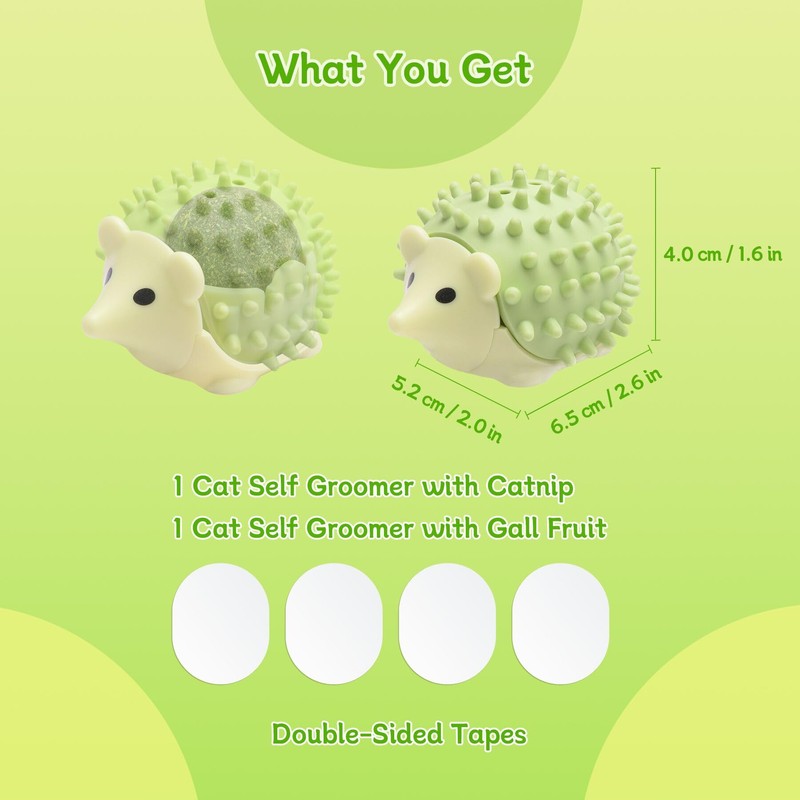 - Lifetime Warranty, Catnip Toy Balls That Stick on Wall: With charming hedgehog shaped design & 6.5 * 5.3 * 4.1 cm/ 2.6 * 2.1 * 1.6 in size, SEVENKA 2-pack cat chew toys are made of 100% natural, organic catnip wall balls and gall fruit ball, attracting cats to the brush and encouraging regular use. Cat nip toy is not only safe & healthy, but also little face scratcher for bored indoor cats
