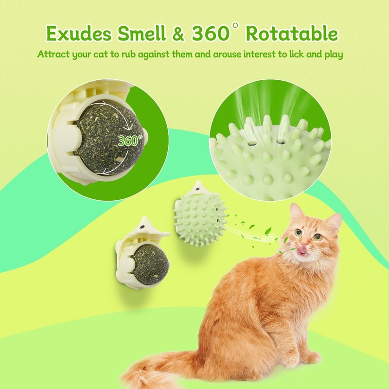 - A MUST HAVE FOR CAT LOVER: Package contains 2 pack self-grooming and massaging corner scratchers for cats, 1 catnip licking ball for cat & 1 gall fruit ball, offering great value and lasting enjoyment for your furry friend. We stand by the quality of our catnip lick toys. If you or your cat do not like it, please let us know