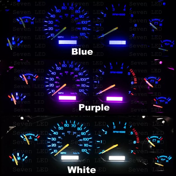 - If your cluster lights up a bluish color: Blue/Green/White/Purple/Ice blue would work with these leds