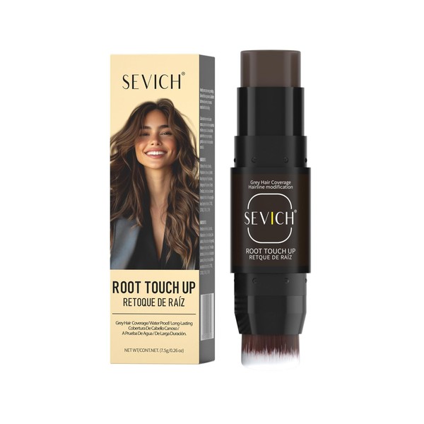 SEVICH Dual-Ended Root Touch Up Stick - Waterproof Hairline Enhancer for Sparse Hairlines & Gray Coverage, Non-Sticky Scalp Concealer with Beeswax, Instant Volume & Natural Look (Dark brown)