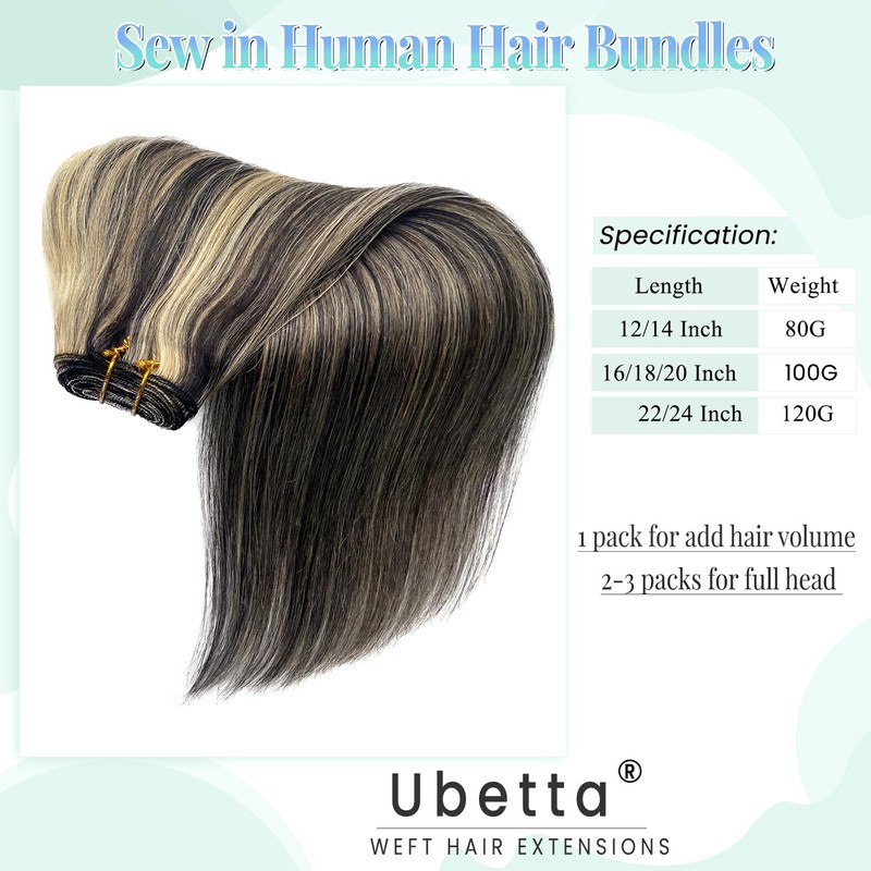 - 【Weft Hair Extensions Human Hair】: Are you tired of clip in hair extensions? Sew in hair extensions real human hair is a perfect choice for adding hair volume, hair length and highlights. Ubetta weft hair extensions human hair bundles, silky straight,no dry and no split ends. Products of different lengths in different weights can be matched in different ways to meet various requirements. 1 pack for full head adding hair volume, 2-3 packs for thick hair or full head adding hair length.