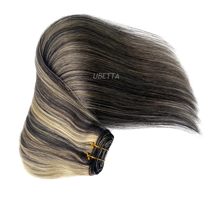 Ubetta weft hair extensions human hair sew in weave bundles human hair is of good quality in inexpensive price, sew in weft hair extensions real human hair can be naturally blended with your own hair and can be washed, flat ironed, or curled by using hot tools, just like your own hair, no shedding, no tangles, no smell, silky soft. If you want to add hair length or volume to your own hair, ombre balayage brown and blonde highlights weft hair extensions human hair sew in hair extensions is a perfect choice.