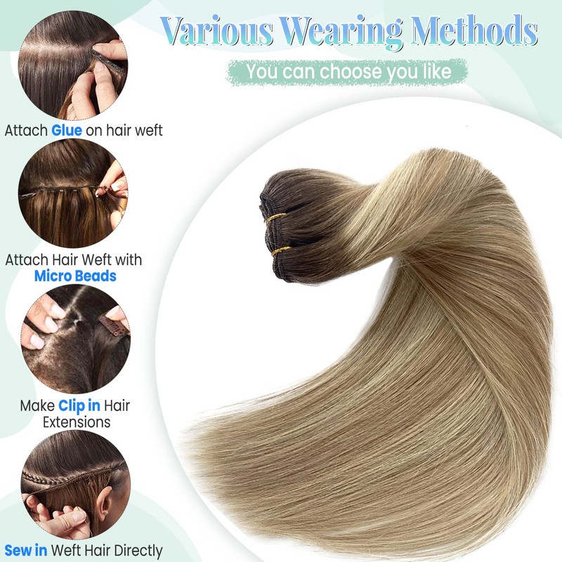 - 【Sew in Hair Extensions】--Ubetta sew in hair extensions real human hair made of 100% real virgin human hair, all cuticle aligned in one direction, soft, bouncy, natural hair volume with healthy hair end, can be blended naturally with any texture hair. Hair wefts sew in weave bundles human hair extensions used to increase hair volume and length to your hair, or add some ombre brown and blonde balayage highlights colors to your hair.