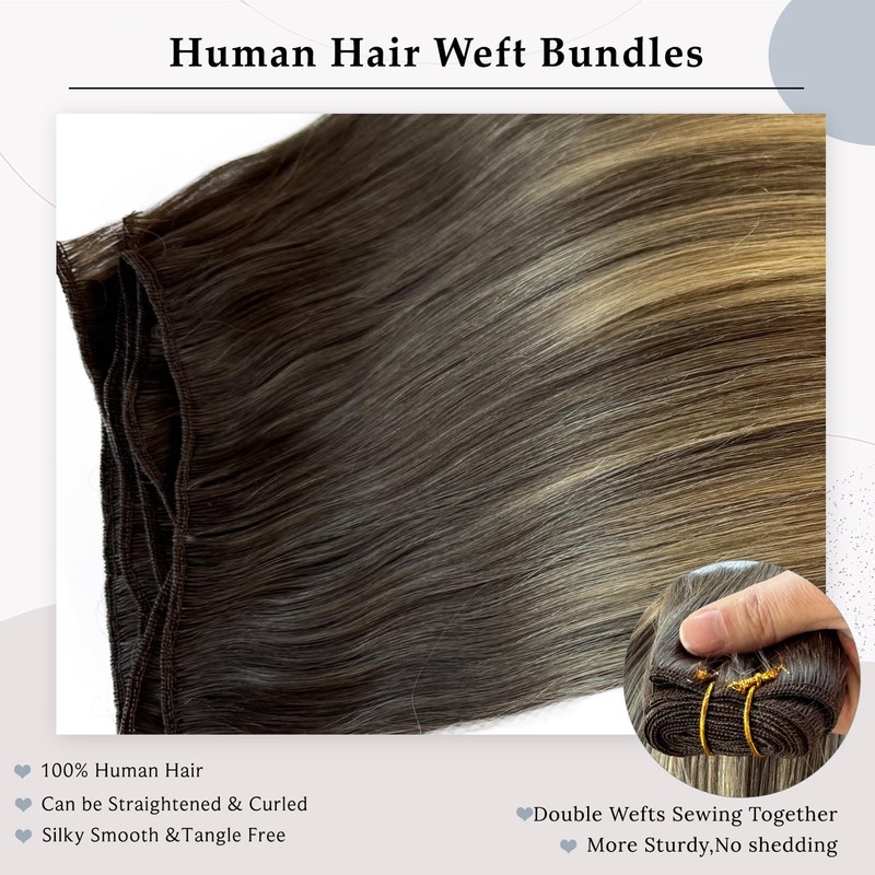 - 【Sew in Hair Extensions】--Ubetta sew in hair extensions real human hair made of 100% real virgin human hair, all cuticle aligned in one direction, soft, bouncy, natural hair volume with healthy hair end, can be blended naturally with any texture hair. Hair wefts sew in weave bundles human hair extensions used to increase hair volume and length to your hair, or add some ombre brown and blonde balayage highlights colors to your hair.