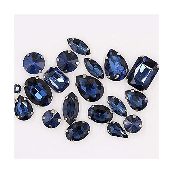 Sew on Rhinestones with Claws, Montana Rhinestones Mixed Shapes Glass Rhinestones for Crafts, Costume, Shoes, Jewelry Making, Rings, Bracelets, Earrings, Necklaces, Belt(20 pcs)