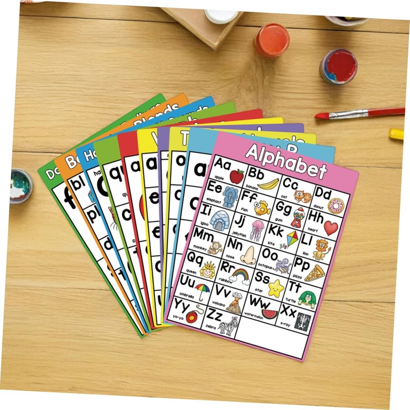 SEWACC 10pcs Classroom Phonics Posters for Sound Wall Alphabet Learning Decorations Vowel Education Tools