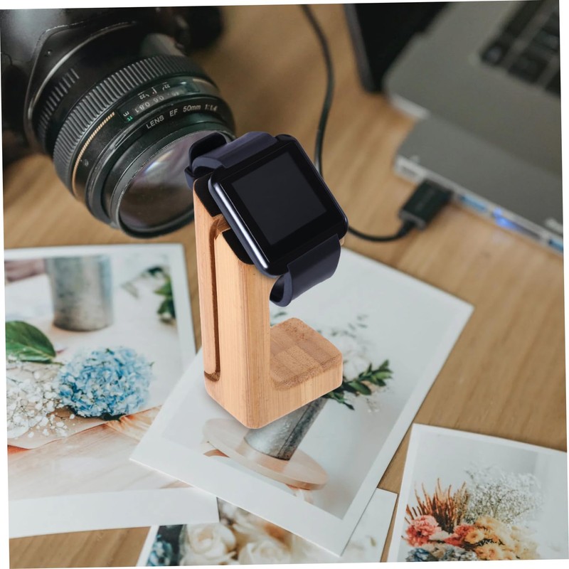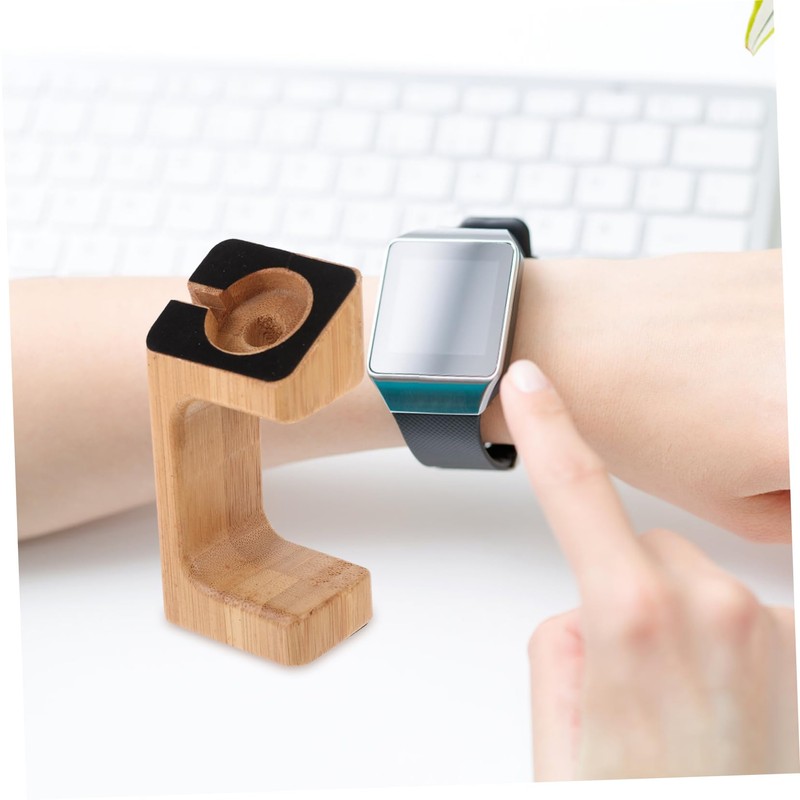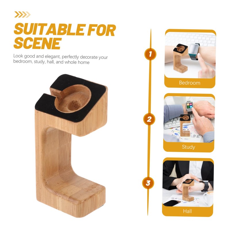 SEWACC 1pc Bamboo and Wooden Watch Stand Type Charging Display Smart Yellow