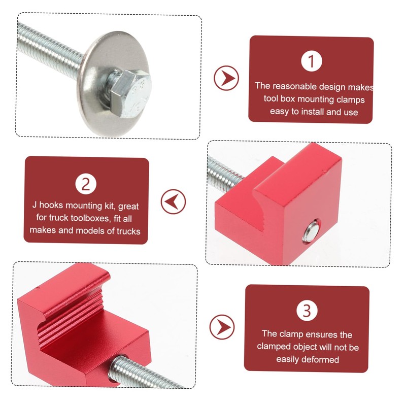 • J hooks pickup--the tool box mounting clamps reasonably designed, sturdy and easy to safely secures toolbox,truck canopy clamps