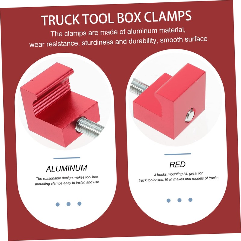 kits These are good mounting clamps, which can meet your needs very well.truck toolbox mounting kit These aluminum mounting clamps are firm and wear resistant, can ensure long time using.tool hooks With these clamp, you can safely secures toolbox for trucks pickup