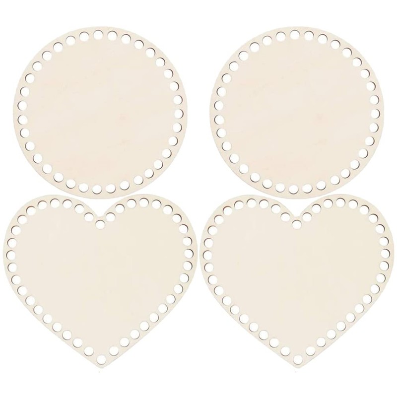 - Classic round and heart shape and large holes, these wooden bottom is your knitting bag, basket creation.