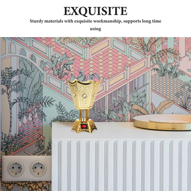 SEWACC Arabian Incense Burner Bakhoor Electric Incense Burner Desktop Plug in Metal Censer Burner for Home Office Yoga Room Decor (Golden, UK Plug)
