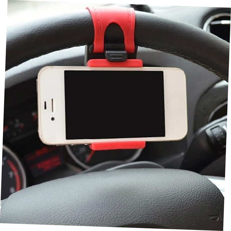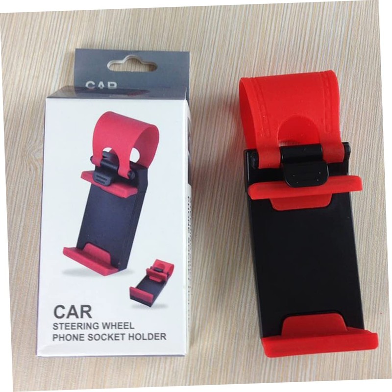 SEWACC Car Steering Wheel Phone Holder Adjustable Hands-Free Mount for Smartphones Universal Fit Red for Drivers