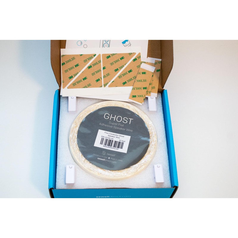 Sewell Sewell Ghost Wire 2.0, Super Flat Adhesive Speaker Wire Kit with 4 Terminal Blocks, 50 ft,16 AWG, 2 Conductor, White