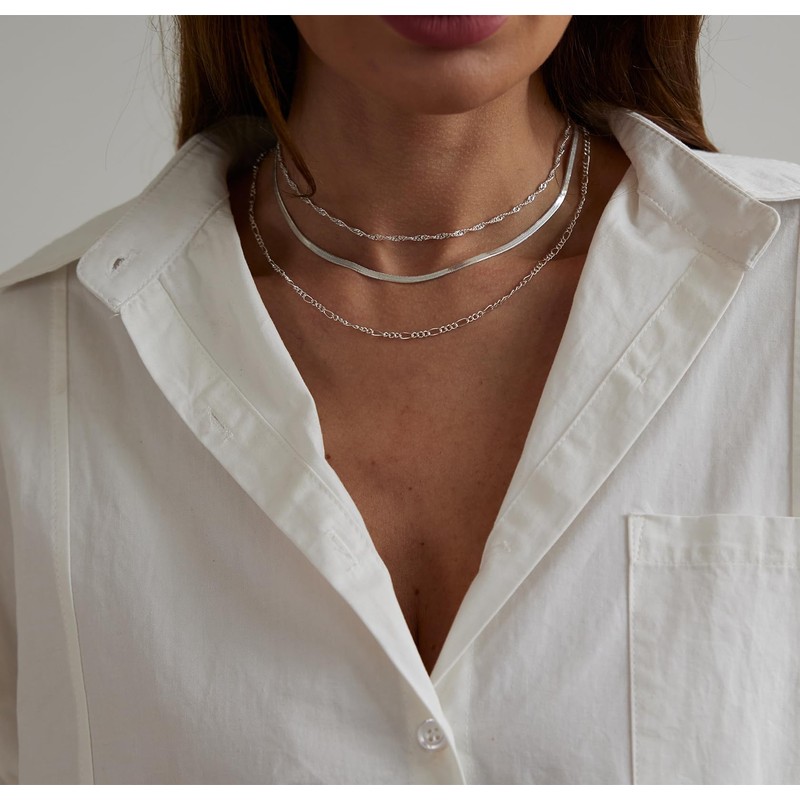 Sewyer Dainty Layered Necklaces for Women Silver Trendy Layering Necklace Snake Paperclip Figaro Chain Layered Necklace Set Everyday Jewelry Gift