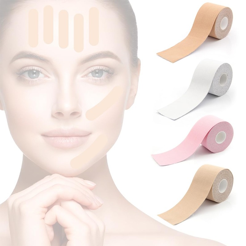 SexxLady 4 Stück Face Lifting Tape, 2.5cm x 5m Tape Falten Gesicht, Anti Falten Pflaster, Zornesfalte Pflaster, Facial Patches für Straffung und Straffung der Haut