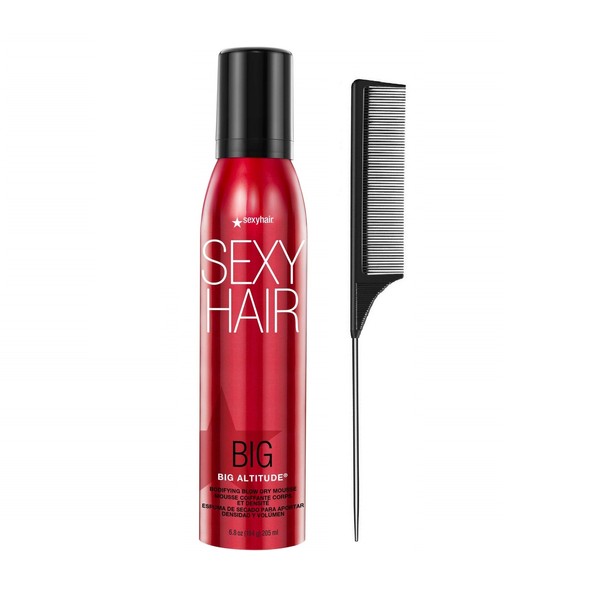SexyHair Big Altitude Bodifying Blow Dry Mousse, 6.8 Oz (with Free Tail Combs)