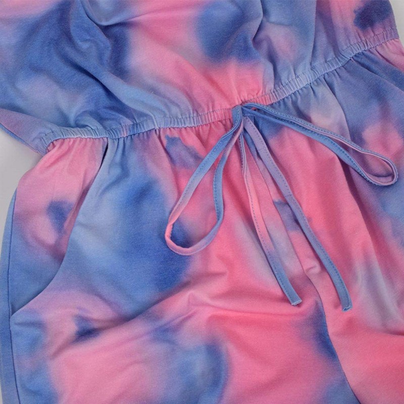 - Feature:Strapless,Lace-up,Short Pant,One-Piece,Elastic Bust,Tie Dye with Pockets