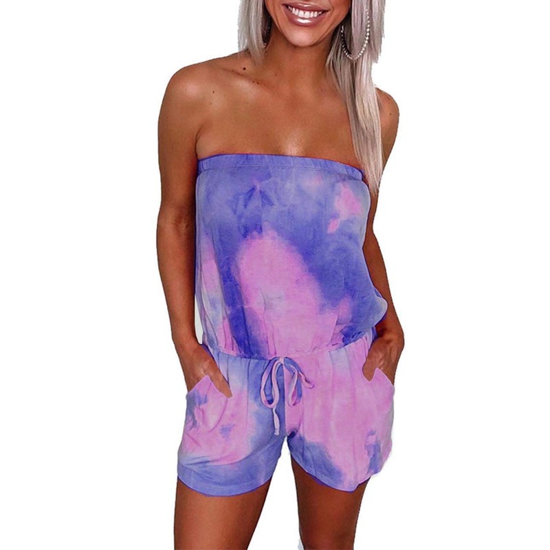 - Feature:Strapless,Lace-up,Short Pant,One-Piece,Elastic Bust,Tie Dye with Pockets
