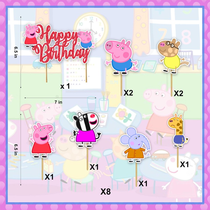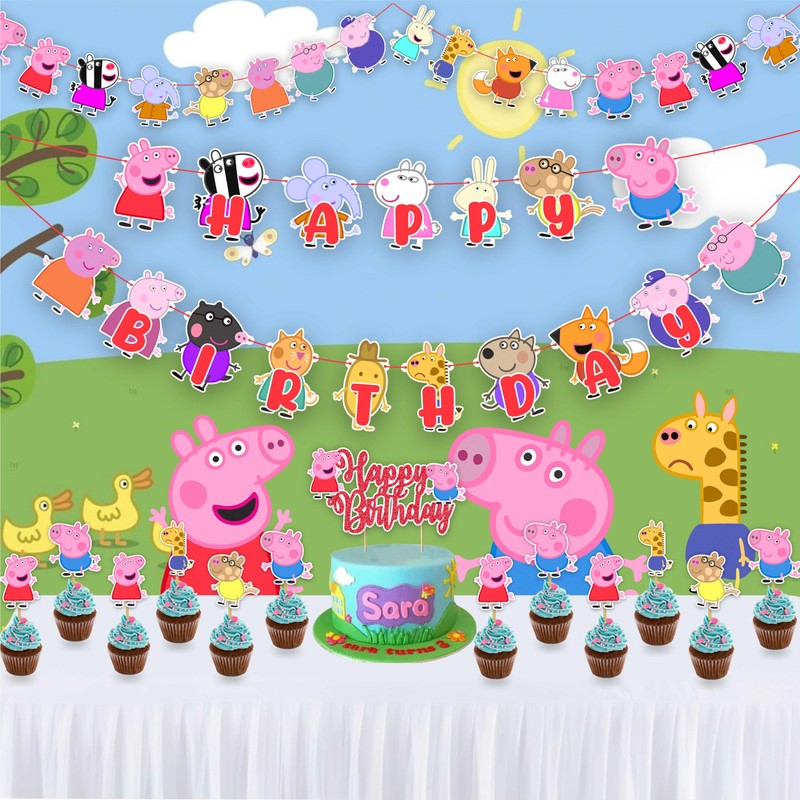 - 🎀 This Pepa Pig theme birthday party supplies set includes: ✔1 Happy Birthday Banner ✔ 24 Cupcake Toppers ✔ Garland Decoration ✔ 1 Happy Birthday Cake Topper