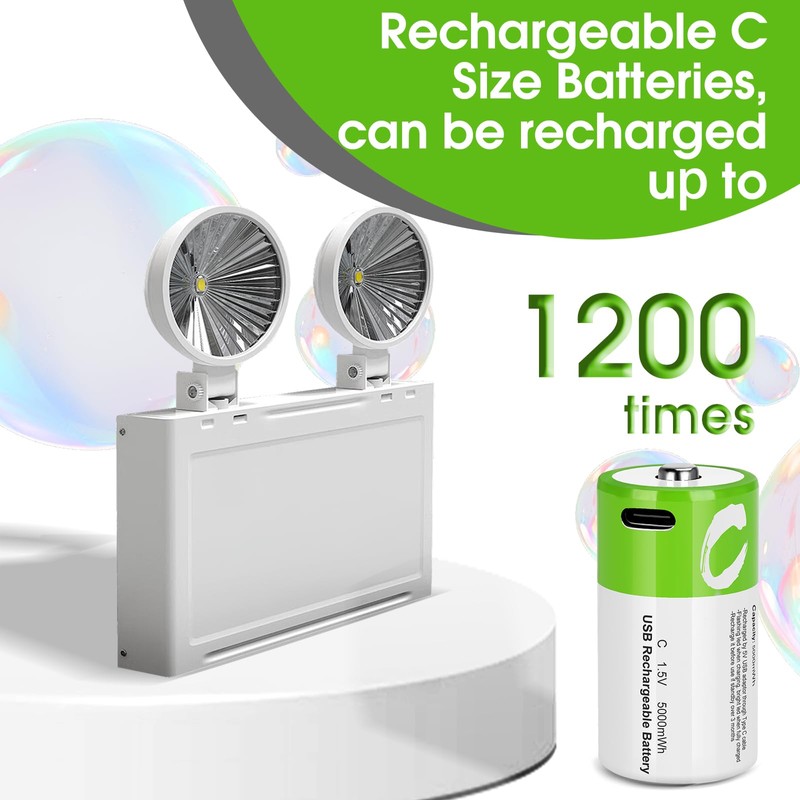 - 【USB Rechargeable C Batteries】No need for a charger or adapter, can be quickly fully charged within 2 hours using a 4 in 1 USB cable, simply plug into a USB port for easy charging.