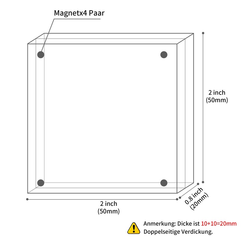 - ❤ Modern Design: Double-sided, frameless, self-standing and magnetic design acrylic picture frame. Two acrylic blocks are free. So you can place two pictures in a row in one picture frame and you can see your pictures from the double side. With two 10 mm thick acrylic blocks, the 5 x 5 cm picture frame can stand very stable on the desktop.
