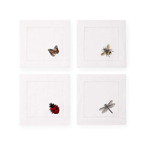 Sferra Insetti Embroidered Cocktail Napkins (6" x 6") - Set of 4