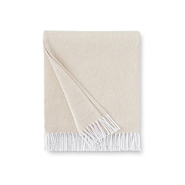 - Lightweight Throw Featuring Classic Basketweave Design With Twisted Fringe Edge.