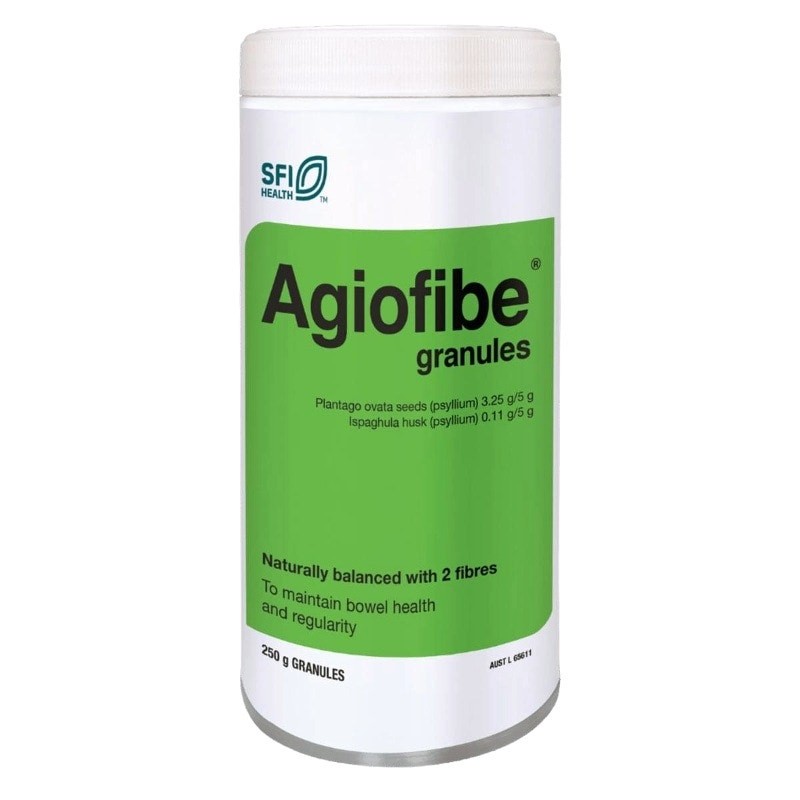 SFI Health Agiofibe (previously Flordis Agiofibe) is a dietary fibre supplement to support healthy bowel function. It contains an optimal balance of insoluble and soluble fibre from the seeds and husks of the psyllium plant. These “gut healthy” fibres support regular bowel movement by adding bulk to the stool and relieving constipation.