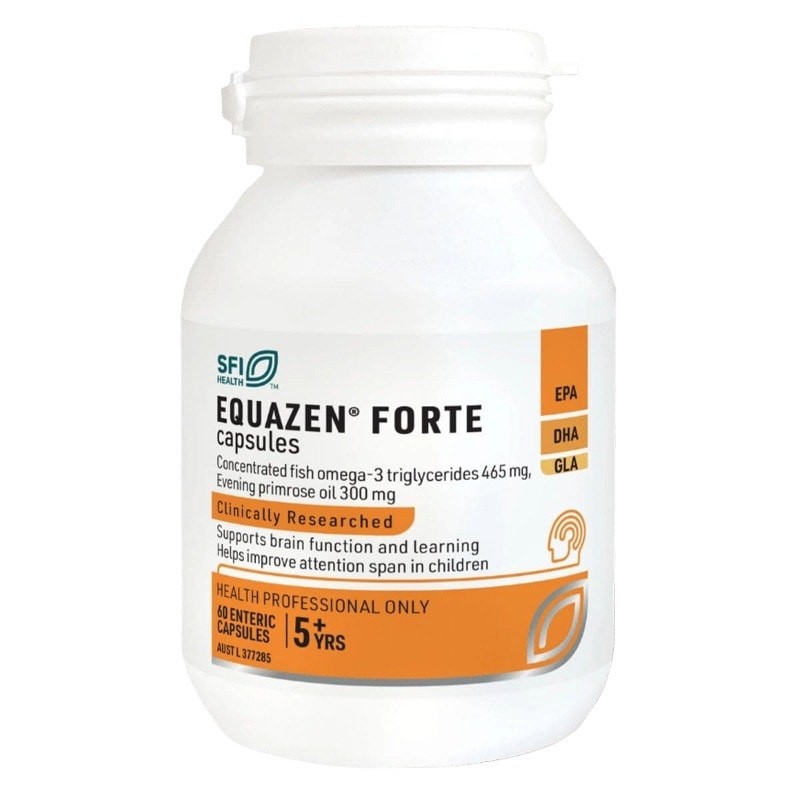 EQUAZEN is a supplement with a specific combination and scientifically researched ratio of omega-3 and omega-6, derived from responsibly sourced fish oil and evening primrose oil. This carefully balanced formula uses a clinically trialled EQUABALANCE ratio of EPA:DHA:GLA at 9:3:1 and has been clinically researched to support concentration, enhance learning ability, such as reading and writing, and support cognitive and brain function in children.