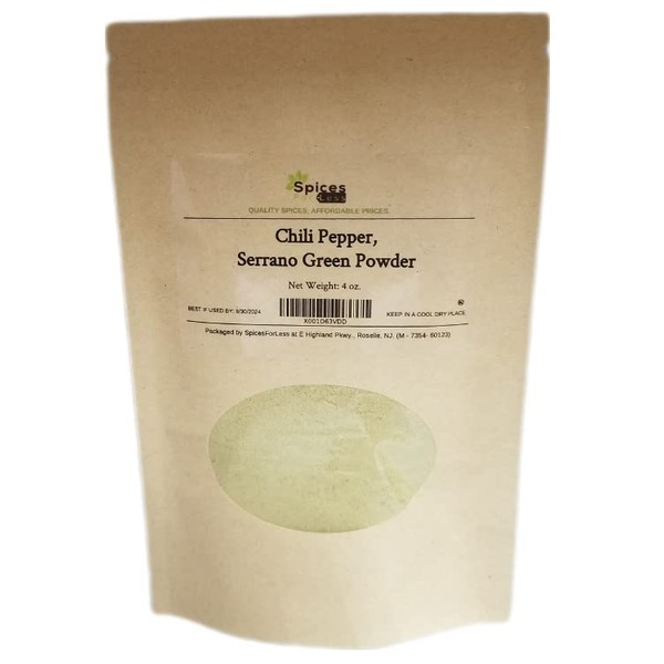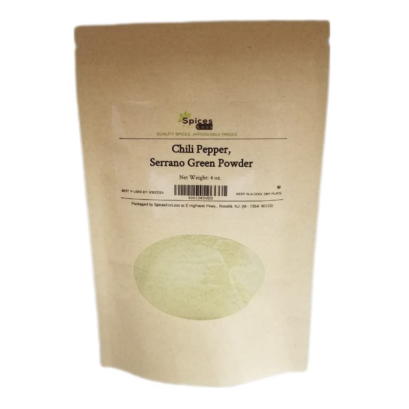 SFL Chili Pepper, Serrano Green Powder - Kosher - Resealable Pouch (4 oz)