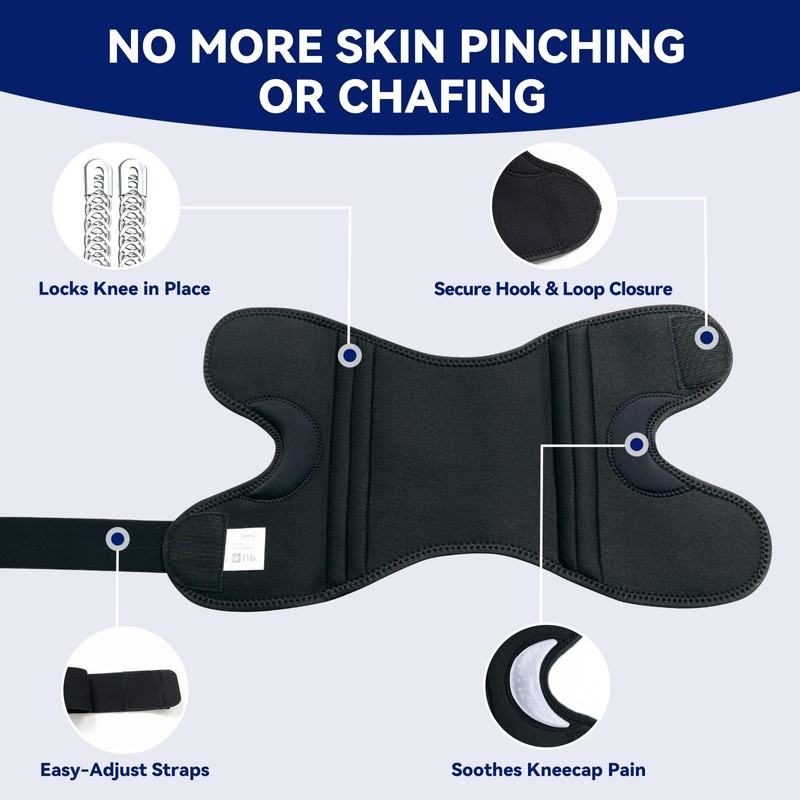 - 【One-Strap Adjustment, Easy Wear】Features an exclusive single-strap Velcro design for effortless fastening—just wrap and secure for a precise fit. Unlike bulky traditional knee braces, it’s lighter and more conforming, staying firmly in place whether worn directly on the skin or over clothing. Perfect knee brace for those with limited mobility to use independently.