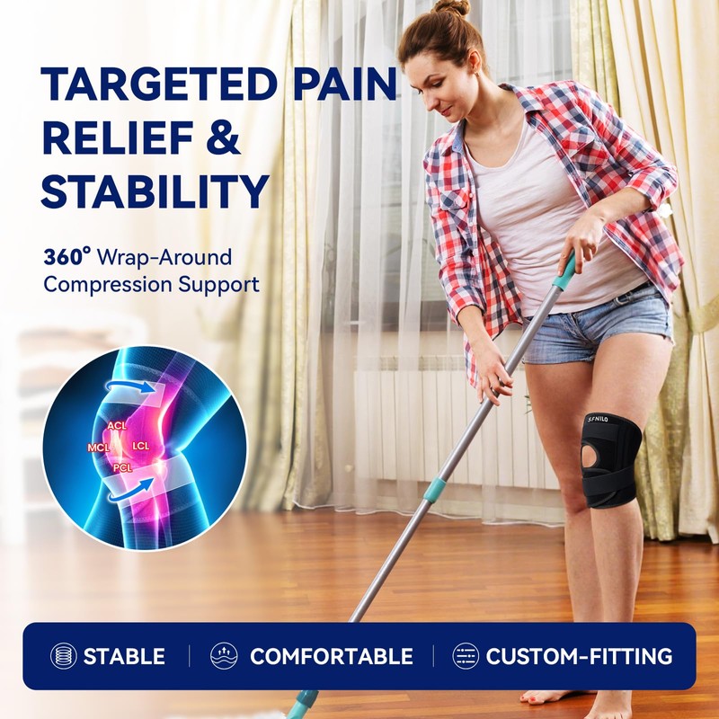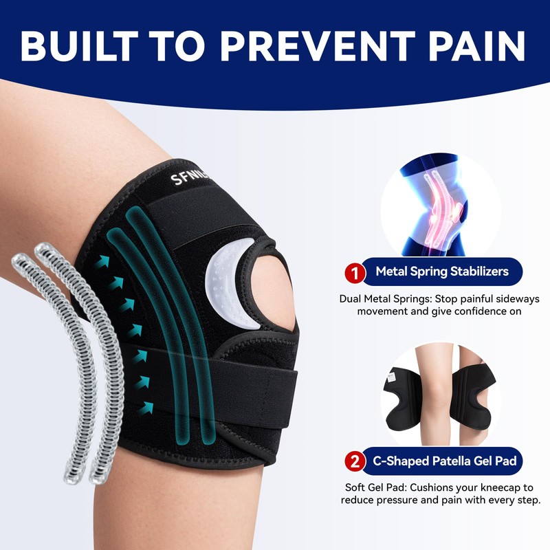 - 【Patella Surround Support, Dynamic Protection】The innovative C-shaped gel pad wraps around the kneecap paired with an open-center structure, securing the patella while maintaining natural bending flexibility. This professional knee brace for meniscus tear and chondromalacia provides active protection during walking, squatting, and standing, offering targeted knee pain relief.