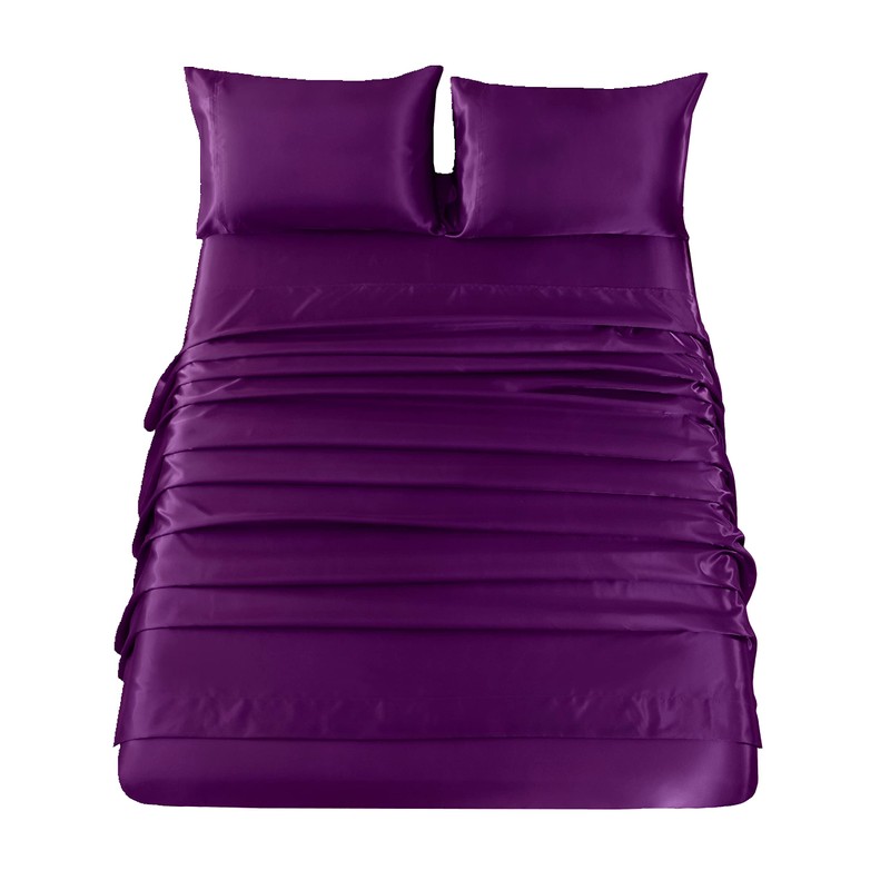 Sfoothome 4Pcs Silky Satin Sheets Set, Full Satin Bed Sheets Set, Purple Satin Bedding Sets, Breathable Soft Sheets Set Includes 1 Fitted Sheet, 1 Flat Sheet, 2 Pillowcases