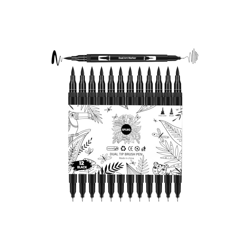 - Dual-Tip Versatility - Each marker features a precise 0.4mm fine tip for detailing/outlining and a flexible 1-2mm brush tip for shading/coloring. Perfect for sketching, hand lettering, bullet journals, and calligraphy
